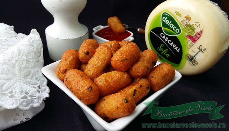 Servim aceste Crochete rapide de cascaval cu un Chutney de Ardei, usor picant sau cu un Sos de rosii. In compozitia acestor crochete putem adauga dupa cum am amintit ori cozi de ceapa verde taiate marunt, ori cozi de usturoi verde. Noua ne plac si natur. Aceste crochete le-am pregatit din Cascaval Sofia, dar daca va place cascavalul afumat va recomand sa incercati si varianta afumata la crochete.