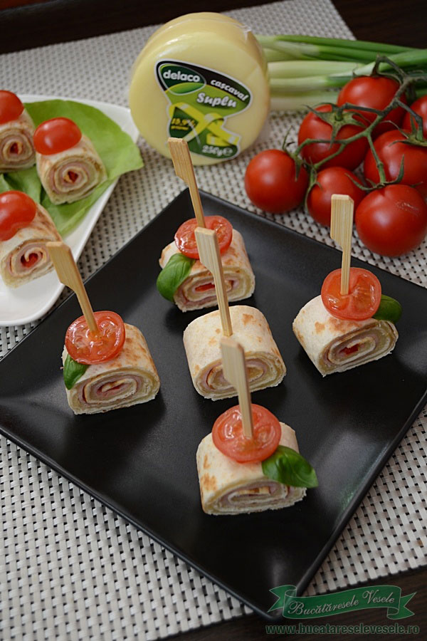 Incercati aceste rulouri din tortilla si cascaval Suplu Delaco si cu siguranta va veti incanta invitatii cu o gustare foarte gustoasa si aspectoasa.