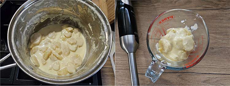 Se scot feliile de pastarnac si se pun intr-un blender sau intr-un recipient inalt si ingust.