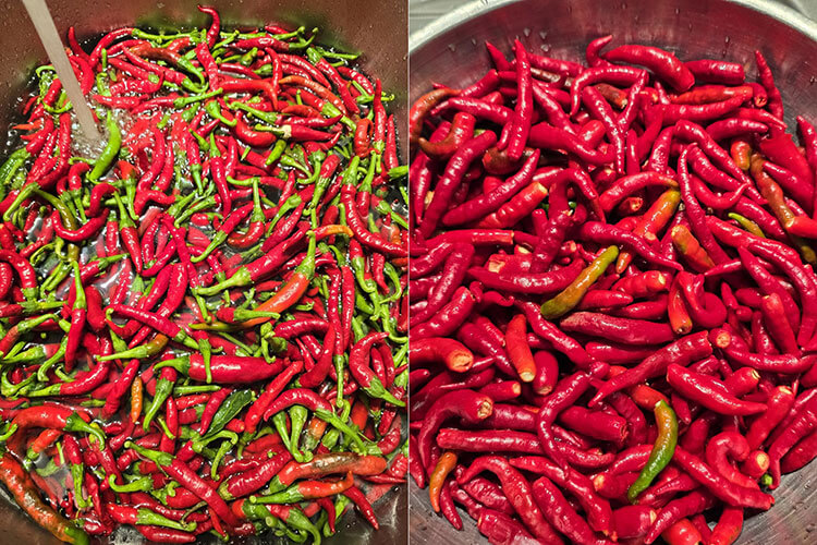 1 kg ardei iuti de preferat jalopeno, (dar puteti folosi orice ardei iute cu conditia sa fie rosii, cate unul verde sau portocaliu mai putem scapa, nu e nicio problema)
