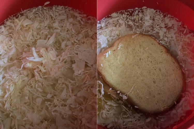 Deasupra vom pune o farfurie care sa tina varza presata si painea si vom avea grija ca apa sa acopere bine totul. Se tine la temperatura camerei la caldura. In decurs de 5 zile puteti savura varza murata.