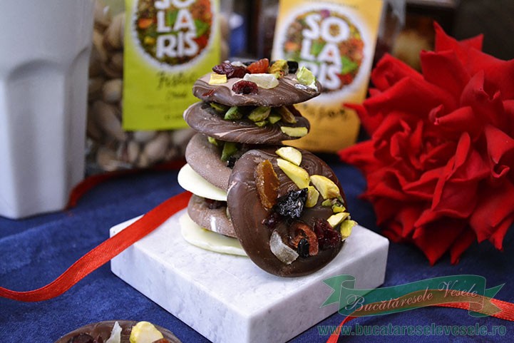 Ciocolata, fructe uscate, fistic toate adunate in banuti deliciosi, pregatiti cu migala, ce pot fi savurati cu placere la orice ora. Ambalati in pungulite sau cutiute dichisite, pot fi un cadou deosebit de oferit celor dragi!!
