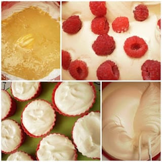 Adaugam zmeura zdrobita usor(eu am adaugat-o intreaga dar e de preferat sa fie zdrobita) incorporam bine si distribuim amestecul in forme individuale sau intr-o forma mai mare dreptunghiulara.