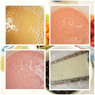 Gelatina se hidrateaza in 150 ml apa rece dupa care se tine pe foc pana se dizolva dar fara sa dea in fiert.