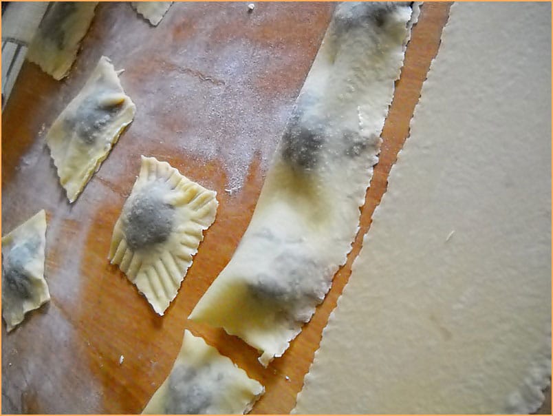 Cu o furculita presam marginile de la patratelele umplute sa se lipeasca.Le punem deoparte pana terminam de umplut aluatul intins.
