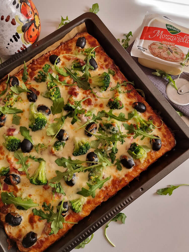 Provocarea venita din partea Delaco ca #joiafacempizza, m-a facut sa pregatesc aceasta Pizza. Blatul folosit pentru pizza este unul care poate fi pastrat la rece mai multe zile, sau poate fi pastrat la congelator timp mai indelungat. Toppingul este la alegerea fiecaruia, eu am folosit un sos de rosii pregatit in casa, sunca taraneasca, broccoli si mozzarella gourmet rasa.