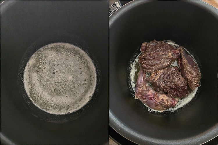 Topim untul impreuna cu uleiul si prajim carnea pe toate partile aproximativ 5 – 10 minute pana se rumenesc.