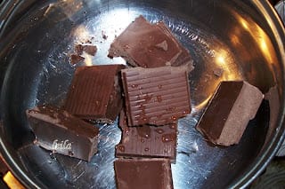 Ciocolata de menaj o punem la topit pe foc cu 4 linguri apa si cand e topita adaugam 20 gr rama. Ciocolata trebuie sa fie mai groasa sa o putem intinde in forme.