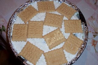 Intr-o cana se amesteca 1 lingura de zeama de lamaie si 5 linguri de zeama de fructe si cu acest sirop se stropesc biscuitii.