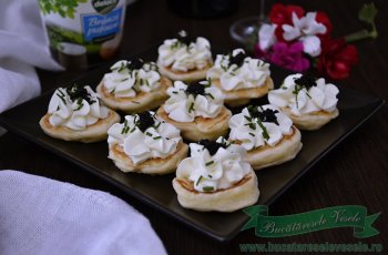 Blini cu crema de branza si icre Aperitivele ocupa un loc foarte important atunci cand pregatim diferite petreceri sau intalniri cu prietenii. Prezentate intr-o gama cat mai variata, cu ingrediente sanatose si gustoase, aperitivele sunt savurate cu mare placere de fiecare data. Blini cu crema de branza si icre-Ingrediente Blini 20 buc 1 ou 100 […]